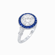 Vintage-Inspired Round Diamond and Blue Sapphire Halo Mounting in 18K White Gold (Mounting)