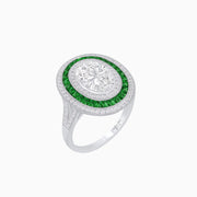 Art Deco Inspired Rectangle Cocktail Ring with Emerald Cut Diamond
